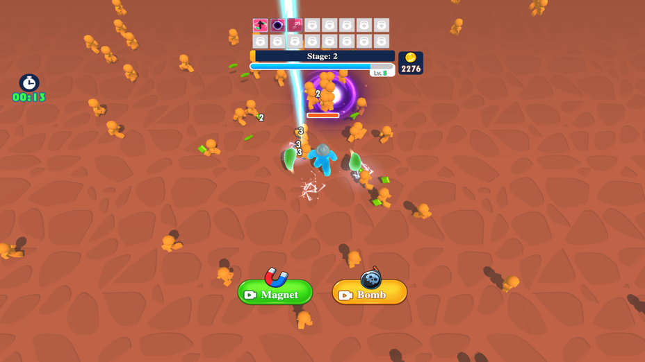 Per eccellere in Jelly Battle, concentrati sulla raccolta di quante più gemme possibili. Queste gemme sono cruciali per aggiornare le tue abilità e abilità. Ricorda di usare il pensiero strategico per decidere quali abilità aggiornare per prime. Ad esempio, migliorare le tue abilità difensive nella fase iniziale può aiutarti a sopravvivere più a lungo, permettendoti di raccogliere ancora più gemme. Riflessi pronti sono anche la chiave-essere sempre alla ricerca di attacchi nemici e muoversi rapidamente per schivarli.