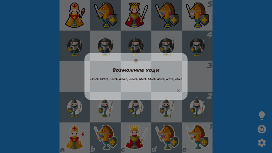 Kids ' Chess è un emozionante gioco strategico in cui puoi immergerti nel mondo degli scacchi su una tavola compatta 5 per 5. Perfetto per principianti e giovani giocatori, questo gioco ti permette di provare l'emozione degli scacchi senza la necessità di registrazione o download. Divertiti a giocare online gratuitamente e sfida te stesso con colpi di scena inaspettati dal motore di facile livello del gioco. Tieni traccia delle tue vittorie e sviluppa le tue abilità mentre ti immergi in questa esperienza divertente ed educativa. Che tu stia giocando su un dispositivo desktop, Android o iOS, Kids' Chess offre un modo coinvolgente e accessibile per bambini e ragazzi di imparare il classico gioco degli scacchi.