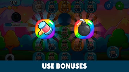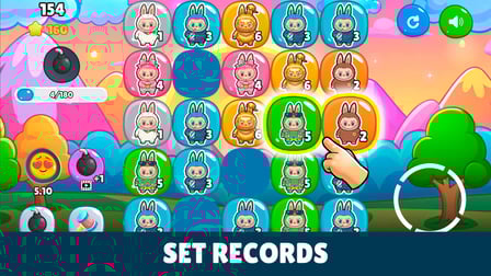 I controlli sono semplici: clicca o tocca sui cubi Labubu identici per unirli. I potenziamenti possono essere attivati toccandoli o cliccandoli mentre sono attivi sullo schermo, portando a risultati sorprendenti!