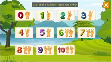 Per impegnarsi con Imparare i numeri da 0 a 10, inizi selezionando c'è ne dei mini-giochi. Per il gioco di riconoscimento dei numeri, fare clic sui numeri colorati per ascoltare i loro nomi. Nel gioco di indovinare, analizza le scelte e seleziona la risposta corretta. Utilizza le abilità di memoria nel gioco di carte lanciando le carte per trovare le corrispondenze. Infine, migliora la tua scrittura praticando i numeri usando il mouse o il touch screen.