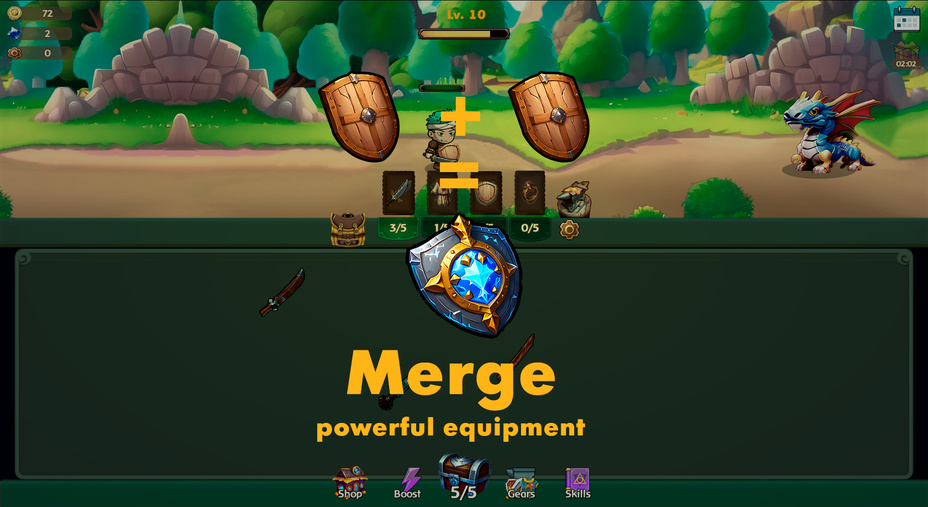 Medieval Dungeon Merge: Idle RPG Battle è un gioco di ruolo esilarante progettato principalmente per ragazzi e ragazzi, in cui puoi combinare oggetti per sconfiggere potenti boss. Prova l'emozione di unire le attrezzature, acquisire oggetti unici, migliorare il tuo personaggio e migliorare le abilità—il tutto all'interno di un'accattivante ambientazione medievale. Questo gioco di alta qualità è disponibile gratuitamente nel tuo browser, non richiede registrazione o download. Goditi l'esperienza senza interruzioni su desktop, Android o iOS e immergiti nel mondo delle battaglie strategiche e delle avventure epiche.