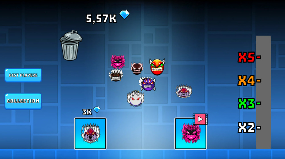 Meger Geometry Dash combina meccaniche di fusione classiche con elementi competitivi che ti spingono a superare in astuzia gli altri giocatori, aggiungendo un livello di eccitazione al gameplay tradizionale!