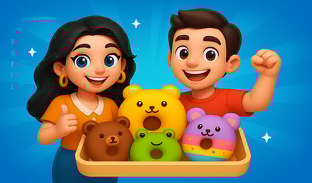 Avvia il gioco su Playhop, utilizza il mouse per unire ciambelle identiche sul tuo computer o tocca le ciambelle sul tuo telefono. Trascina le ciambelle identiche sopra l'altra per fonderle, creando ciambelle più grandi e colorate man mano che progredisci.