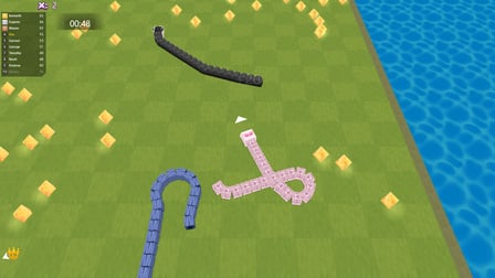 Per giocare Merge Snake War, è sufficiente inserire il gioco attraverso il browser preferito e iniziare a manovrare il vostro personaggio serpente di fondersi con gli altri. La chiave è far crescere il tuo serpente consumando avversari più piccoli ed evitando minacce più grandi. Utilizza power-up e movimenti strategici per superare in astuzia i tuoi nemici e scalare la classifica.