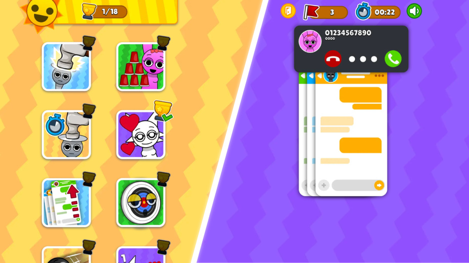 Mini Giochi: Sprunki Mod Tik Tock Sfida dispone di una serie di mini-giochi che vetrina gameplay emozionante. Dalla cattura di Sprunki che cadono alla navigazione attraverso ostacoli vibranti, i giocatori sperimentano una grafica brillante abbinata a animazioni esilaranti. La natura intuitiva del design di ogni gioco assicura che i giocatori di tutte le età possano divertirsi, rendendolo una scelta perfetta per l'intrattenimento per famiglie.