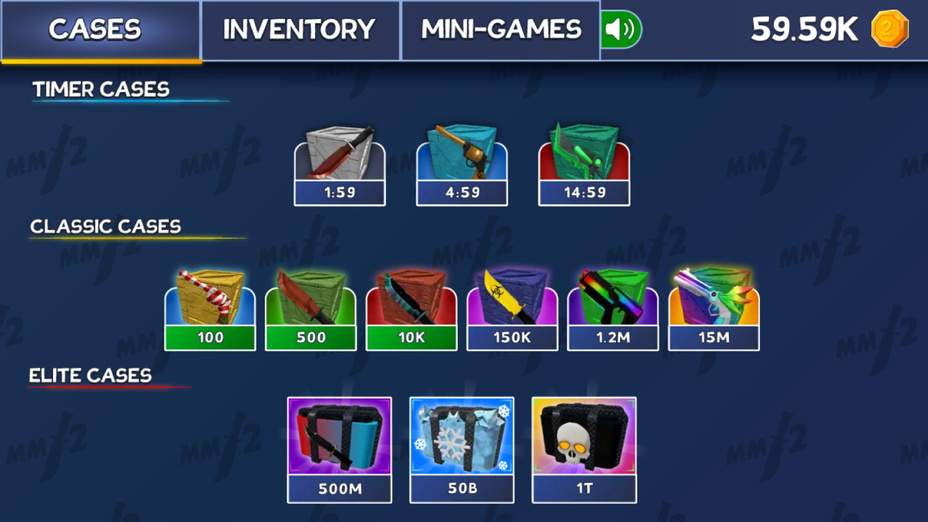 MM2: Case Simulator 2 è un gioco simulatore esilarante in cui è possibile immergersi nel mondo di Murder Mystery 2 gameplay ispirato. Gira le custodie delle armi, raccogli oggetti ambiti o vendili per avanzare nel gioco. Gioca online gratuitamente senza registrazione o download e provare l'emozione di trovare i rari oggetti divini. Che tu sia su un dispositivo desktop, Android o iOS, immergiti in questo browser game di alta qualità pieno di emozioni infinite.