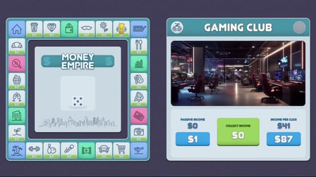 Inizia il tuo viaggio lanciando i dadi per muoverti sul tabellone. Quando ti fermi su diverse caselle, prendi decisioni sull'acquisto e il miglioramento delle attività. Usa le caselle speciali per ottenere vantaggi e potenziare il tuo impero. Monitora il tuo flusso di cassa e fai acquisti strategici di oggetti di lusso per aumentare il tuo patrimonio netto e il tuo posizionamento in classifica. L'obiettivo è costruire e gestire un impero finanziario fiorente.