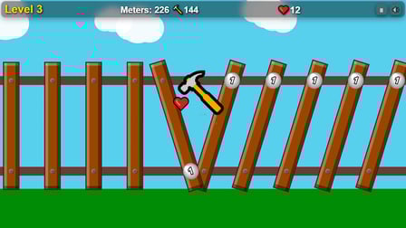 Inizia il tuo viaggio in Nail the Fence! lanciando il gioco nel tuo browser. Per giocare al computer, basta posizionare il mouse sull'asse e cliccare per batterla. Per chi gioca sul cellulare, tocca semplicemente lo schermo al momento giusto. Il tuo obiettivo è battere i chiodi prima che l'asse scivoli via!