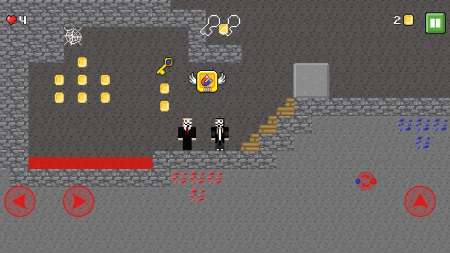 Noob e Pro vs Hacker è un emozionante gioco di puzzle-avventura in cui è possibile intraprendere una missione di fuga emozionante. Gioca online gratuitamente senza scaricare e immergiti nell'atmosfera di sfide accattivanti mentre navighi attraverso il mondo pixelato. Il gioco riunisce l'improbabile duo di Noob e Pro, intrappolati dall'astuto hacker, e la tua missione è aiutarli a trovare le chiavi per aprire i portali e fuggire dalla prigione. Il gioco offre un accattivante mix di azione, avventura e rompicapo che ti terranno impegnato per ore. Esplora miniere, antichi templi, deserti e dungeon nel mondo cubico ispirato a Minecraft, scoprendo nuove posizioni e raccogliendo monete per acquistare nuove skin. Godetevi piacevole grafica pixel e musica come si strategize per superare in astuzia l'Hacker e provare l'emozione di sbloccare nuove avventure.