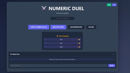 Numeric Duel è un'unica combinazione di classici giochi di strategia e meccaniche di vantaggio numerico. Nato dall'idea di unire competenze matematiche con la guerra tattica, offre ai giocatori una prospettiva fresca sui giochi di combattimento tradizionali.