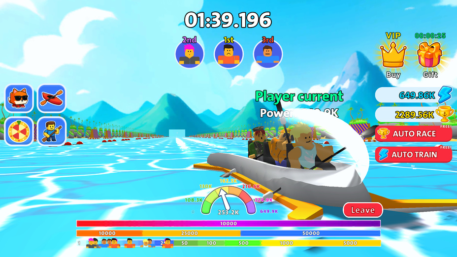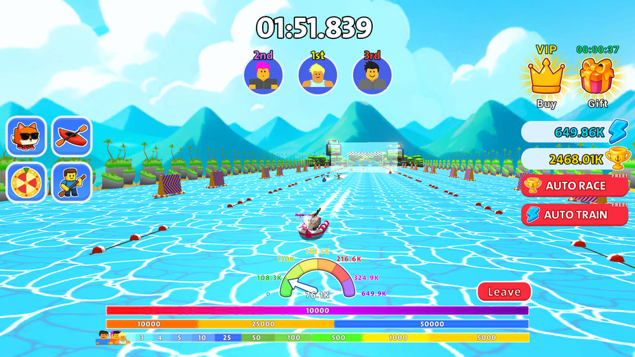 Obby: Kayak Race combina un gameplay frenetico, visivi vibranti e spirito competitivo. I giocatori navigano attraverso livelli progettati intricatissimi con vari ostacoli, mirano a raggiungere per primi il traguardo mentre migliorano le loro abilità e sbloccano nuovi compagni animali. L'emozione di competere per essere tra i primi 50 giocatori aggiunge un ulteriore livello di eccitazione che mantiene i giocatori coinvolti.