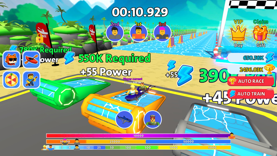 Domina Obby: Kayak Race richiede strategia. Concentrati sul raccogliere power-up sparsi lungo il percorso di gara per aumentare la tua velocità. Tieni sempre d'occhio i tuoi avversari e anticipa le loro mosse. Esercitarti sul tuo percorso può aiutarti a trovare scorciatoie, rendendo più facile superare i tuoi avversari.