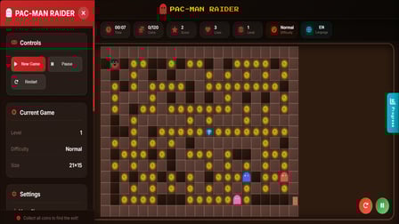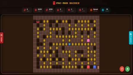 Unisciti a PAC-MAN Raider in questa avventura virtuale mentre esplori le intricate tane di un'antica tomba! Raccogli tutti i tesori e affronta i corridoi insidiosi evitando i fantasmi. Questa esperienza di gioco online non è soltanto gratuita, ma offre anche una gameplay rinnovata che strizza l'occhio ai classici! I labirinti dinamici e i vari tipi di fantasmi garantiscono che ogni partita sia unica!
