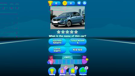 Quiz: Che tipo di auto? è un gioco a quiz esilarante in cui è possibile testare la vostra conoscenza di automobili classiche e contemporanee. Immergiti nel mondo delle auto senza bisogno di download, mentre ti sfidi a identificare i marchi automobilistici con i loro loghi e molto altro. Gratis per giocare online, questo gioco offre un'esperienza coinvolgente che non solo intrattiene, ma anche educa, che lo rende perfetto per gli appassionati di auto e le menti curiose allo stesso modo. Che tu sia un pilota esperto o un amante delle auto d'epoca, Quiz: che tipo di auto? vi conquisterà con le sue diverse sfide e curiosità divertenti.