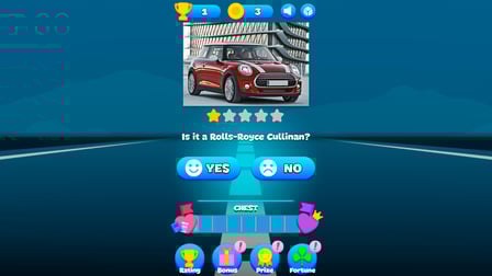 Nel Quiz: Che tipo di auto?, entrerai nei panni di un appassionato di auto per determinare la marca e il modello di vari veicoli. Il gioco presenta numerosi livelli ambientati in luoghi unici, dove dovrai affrontare una varietà di auto che vanno da eleganti modelli sportivi a iconici classici vintage. Man mano che progredisci, incontrerai un innovativo sistema di allenamento della memoria e dell'intuizione progettato per affinare le tue abilità. Questo gioco è più adatto per adolescenti e adulti con una passione per le auto, offrendo un'esperienza educativa ma emozionante che trascende i tradizionali giochi di guida.