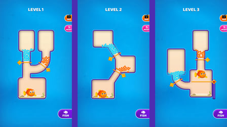 Utilizza il pulsante sinistro del mouse o il tocco per interagire con i pin. Le tue azioni devono essere precise; ogni scelta può influenzare direttamente il destino del pesce. Rimuovi strategicamente i pin e osserva il risultato delle tue decisioni.
