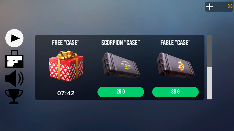 Per iniziare a giocare a Simulator Cases Standoff 2, basta avviare il gioco nel tuo browser. Su un dispositivo mobile, naviga utilizzando gesti tattili: tocca la cassa che desideri aprire e guarda mentre si apre per rivelare gli oggetti all'interno. Puoi scorrere nella tua collezione per visualizzare i tuoi oggetti e confrontarne la rarità. Per gli utenti desktop, usa il mouse per cliccare sulle casse e gestire il tuo inventario in modo semplice. Fai attenzione alle rarità… più giochi, migliore diventa la tua collezione!