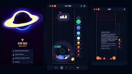 Per iniziare il tuo viaggio nel gioco Stellar Merge, basta trascinare e rilasciare oggetti simili per unirli in potenziamenti di livello superiore. Usa il dito o il mouse per avviare le fusioni e osserva come gli elementi stellari si fondono. Esplora diverse modalità di gioco: scegli uno stile di gioco rilassato per un'esperienza tranquilla o passa a una modalità di gioco ricca di azione in cui puoi liberare abilità potenti come i Buchi Neri. Sia che tu stia giocando sul tuo telefono che sul tuo computer, i controlli sono fluidi e facili da usare, permettendoti di tuffarti subito nel divertimento.