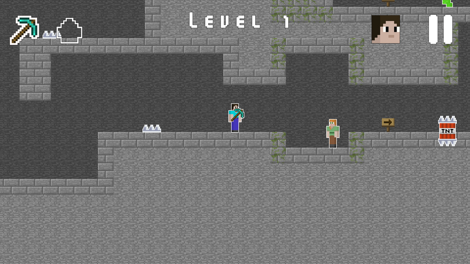 - Scegli il tuo personaggio: Steve o Alex, ognuno con strumenti unici (spada o piccone).