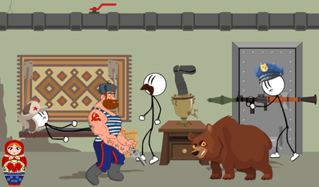 Entra nel mondo eccentrico di Stick Fuga dalla prigione e la Luna, un accattivante libero gioco online in cui si guida Bastone attraverso una ricerca avventurosa per la libertà! In questo spiritoso gioco di fuga, incontrerai esilaranti stereotipi russi, dai classici samovar agli orsi giocosi e alle bambole matrioska, il tutto mentre pianifichi la tua audace fuga. Con una bella grafica e animazioni vivaci, questo gioco promette coinvolgente gameplay questo ti tiene sulle spine mentre navighi attraverso una prigione russa e oltre.