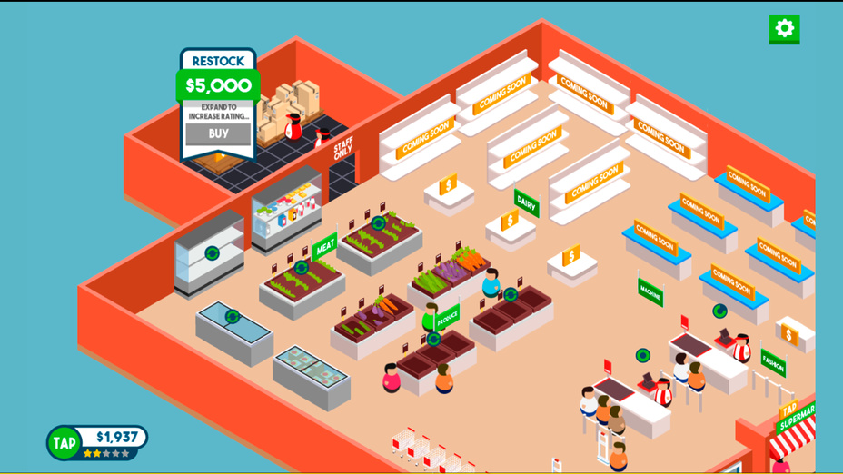 In TAP Supermarket, i giocatori vestono i panni di un responsabile del negozio con l'obiettivo di far crescere la propria attività. Il gioco presenta una grafica vivace e un'interfaccia intuitiva, che lo rende accessibile e divertente per i giocatori di tutte le età. Gli elementi chiave includono la gestione delle scorte, il servizio clienti e gli aggiornamenti strategici. La difficoltà progressiva del gioco assicura che i giocatori siano costantemente sfidati, mantenendoli impegnati con nuove funzionalità e dipartimenti da sbloccare.