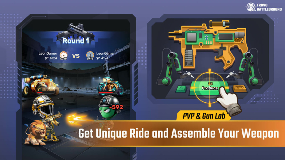 Preparati per un'avventura emozionante in Trovo BattleGround, un unico RPG clicker dove ogni colpo ti avvicina alla vittoria e ai nuovi equipaggiamenti! Sconfiggi boss formidabili e sfida avversari in duelli e battaglie di squadra impegnativi che metteranno alla prova le tue abilità e strategie. Immergiti in un mondo in continua evoluzione dove puoi sbloccare animali domestici, skin esclusive e potenziare i tuoi poteri in laboratorio. Scala la classifica mentre partecipi a eventi speciali, potenzia il tuo veicolo e domina i tuoi avversari con una superiore abilità di combattimento!