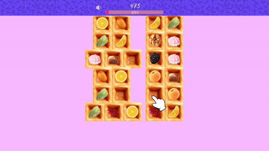 Per iniziare il tuo viaggio di selezione delle cialde, inizia scorrendo o facendo clic sulle cialde. L'obiettivo è semplice: collegare tre elementi identici orizzontalmente, verticalmente o diagonalmente. Per i dispositivi mobili, usa le dita per toccare e trascinare gli elementi. Sul desktop, utilizzare il mouse per fare le partite. Mentre elimini con successo ogni set, osserva come i nuovi waffle cadono nella griglia, sfidando continuamente le tue abilità di smistamento!