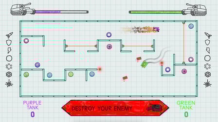 In War Of Tanks: Paper Note, prenderai il controllo di un carro armato per conquistare i tuoi avversari e ottenere la vittoria. Incontrerai 3 diversi livelli con luoghi unici, vari avversari e un innovativo sistema di bonus. Che tu stia giocando da solo o in modalità a due giocatori, il gioco offre sfide coinvolgenti e opportunità strategiche. Distruggi gli obiettivi per attivare i laser e passare al livello successivo. Tuttavia, fai attenzione ai laser in quanto possono causare l'esplosione del tuo carro armato se non hai eliminato gli obiettivi. Con più livelli e obiettivi, War Of Tanks: Paper Note garantisce un'esperienza di gioco dinamica senza limiti di età, rendendolo perfetto per gli appassionati di azione e giocatori occasionali.