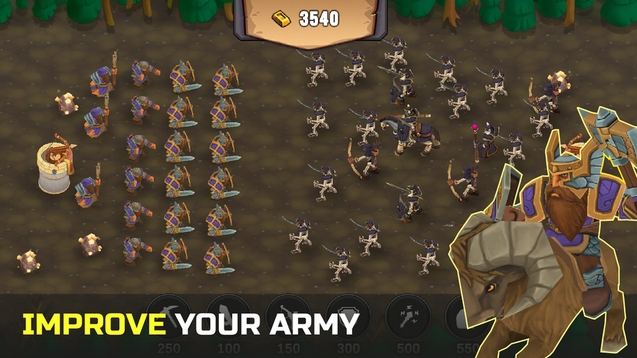 - Costruisci unità: acquista unità diverse come spadaccini, arcieri, carri armati, maghi e cavalleria per creare un esercito equilibrato.