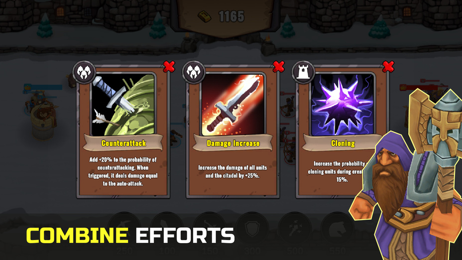 - Distribuisci aggiornamenti: seleziona uno dei tre aggiornamenti durante la battaglia per migliorare il tuo gameplay e la tua strategia.
