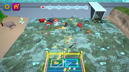 Inizia usando il tuo puntatore per trascinare oggetti di spazzatura galleggianti o presenti nell'area principale. Rilasciateli sulla piattaforma di raccolta al centro in basso. Abbina due oggetti identici per guadagnare punti. Continua ad abbinare fino a quando l'intera scena è pulita e progredisci attraverso i livelli.