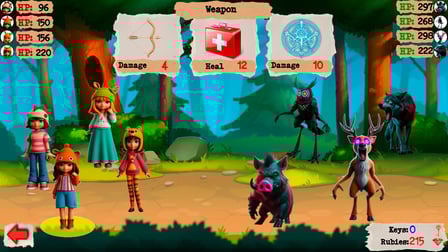 Wejdź do zaczarowanego świata 99 Nights in the Forest! Najpierw wybierz drużynę czterech wyrazistych bohaterów, dbając o zbalansowanie ich mocnych stron. Bierz udział w turach, które wymagają strategicznego podejmowania decyzji – czy zaatakujesz, uleczysz, czy się obronisz? Każda sesja może być rozgrywana w domu na komputerze lub wszędzie na urządzeniu mobilnym, co czyni ją dostępną dla wszystkich!