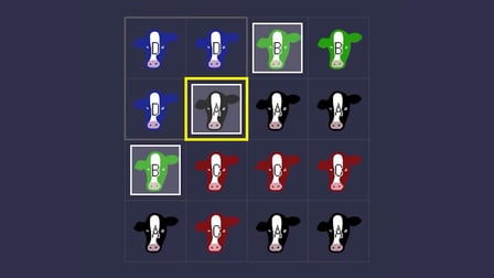 Steruj grą, klikając na krowy oznaczone białymi polami. Mysz lub touchpad działają jako twoje główne narzędzie do wybierania i rozprzestrzeniania kolorów. Użyj przycisku cofania, aby cofnąć niezamierzone ruchy. Na urządzeniach mobilnych dotknij krów, aby wykonać swoją strategię. Intuicyjne sterowanie gry sprawia, że jest ona dostępna, a jednocześnie stanowi wyzwanie.