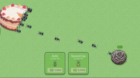 Rozpocznij swoją przygodę, obserwując swoje mrówki, gdy automatycznie przeszukują żywność rozsianą po mapie. Twoim zadaniem jest zarządzanie zasobami, które przynoszą i podejmowanie najlepszych decyzji dotyczących ulepszeń, aby zwiększyć ich efektywność. Uważaj na ilość zebranego jedzenia i upewnij się, że twoje mrowisko jest dobrze zaopatrzone, aby przejść przez poziomy. Kluczem jest ciągłe zwiększanie swojej kolonii poprzez podejmowanie rozsądnych decyzji o tym, kiedy i jak ulepszać swoje mrówki.