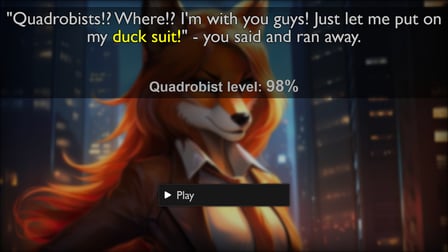 W Czy jesteś quadrobist?, gracze poruszają się po kolorowym interfejsie wypełnionym wciągającymi efektami wizualnymi i kapryśną grafiką. Gra rozwija się dzięki swojej zdolności do rozrywki, oferując jednocześnie wnikliwe informacje zwrotne na temat cech osobistych, dzięki czemu jest nie tylko przyjemna, ale także pouczająca.