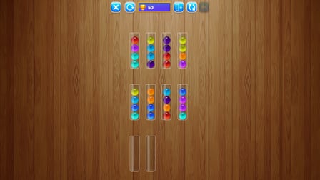 Sterowanie jest proste: wystarczy dotknąć rurki, aby podnieść górną kulkę, a następnie dotknąć innej rurki, aby ją upuścić. Użyj przycisku Cofnij, aby cofnąć ostatni ruch, jeśli popełnisz błąd lub chcesz spróbować innej strategii, a pamiętaj, aby mądrze zarządzać swoimi rurkami!