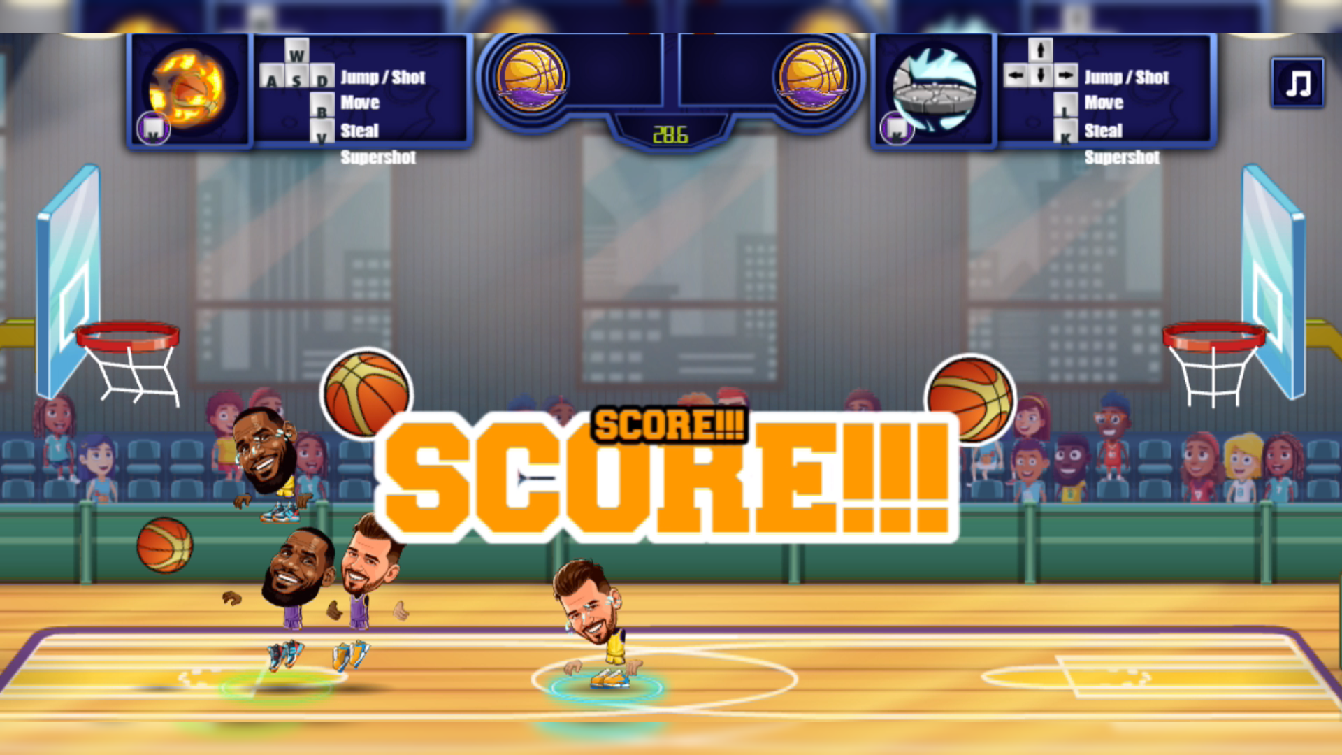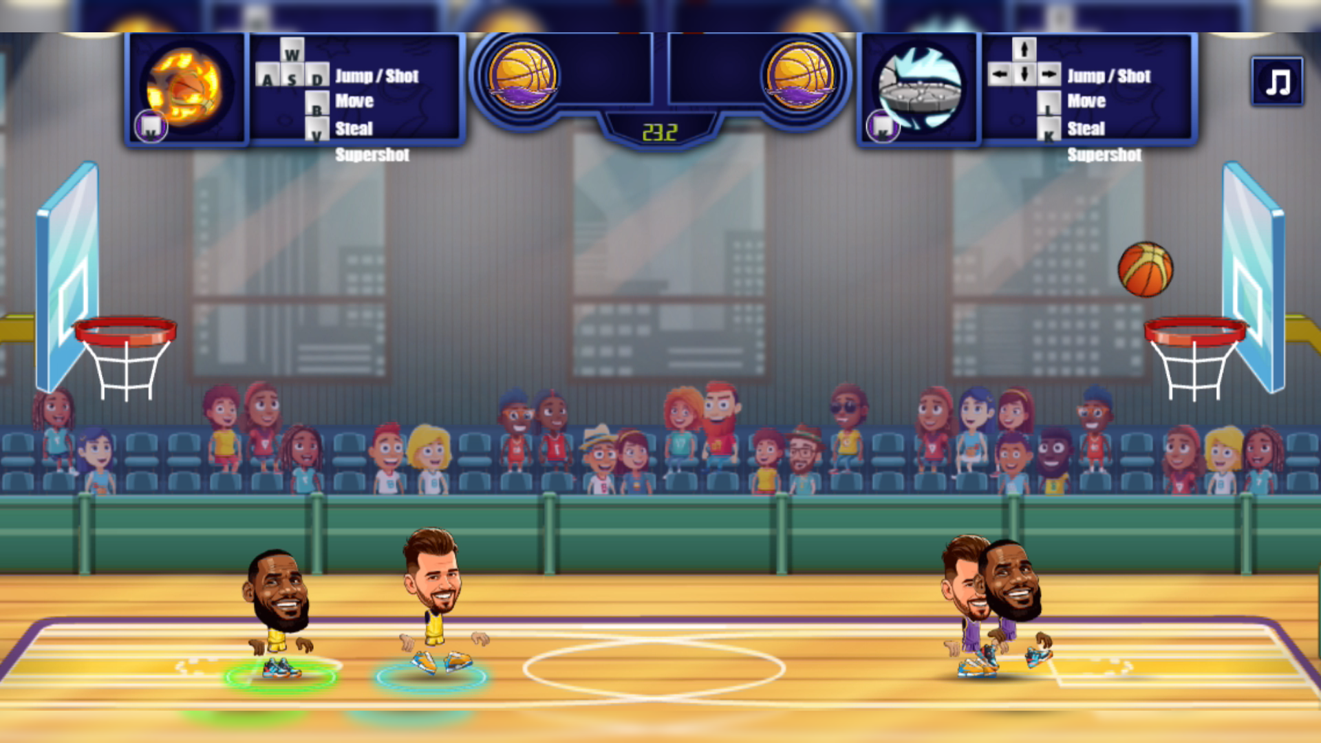 Dla jednego gracza użyj WASD lub strzałek do poruszania się. Naciśnij X/L, aby strzelać lub kradnąć piłkę, S do podań lub blokowania, a podwójne naciśnięcie A/D lub lewego/prawego strzałka, aby zasuwać. Wykonaj supershot za pomocą K/Z. W trybie dla dwóch graczy, gracz 1 używa WASD i B do akcji, podczas gdy gracz 2 korzysta ze strzałek i L.