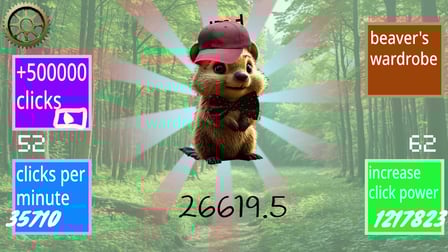Uwolnij swojego wewnętrznego mistrza bobra, klikając strategicznie! Skup się na zwiększeniu swojej mocy klikania, zanim spróbujesz zwiększyć liczbę kliknięć na minutę. Pamiętaj o sekcji wskazówek; odkryją one sekrety, które mogą znacznie poprawić Twoje doświadczenie z grą. Pamiętaj, że personalizacja to klucz, więc zainwestuj w unikalne ubrania, aby Twój bober wyglądał wyjątkowo!
