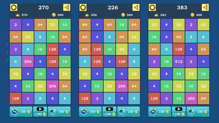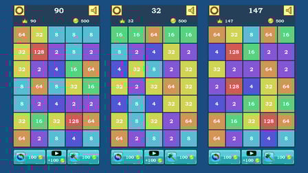 Po prostu kliknij bloki o tej samej wartości, aby je scalić. Użyj młotka, wybierając go z opcji bonusowych, aby rozbić bloki, i dotknij dwóch bloków, aby aktywować opcję wymiany.