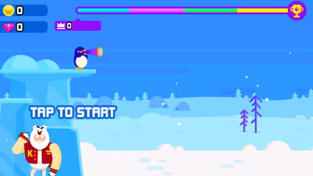- Kliknij, aby wyrzucić pingwina z początkowej platformy.