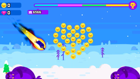 - Kliknięcie myszką lub dotyk: Wyrzuć pingwina i kontroluj jego lot.