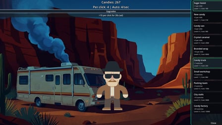 Maksymalizuj produkcję cukierków, mądrze inwestując w ulepszenia takie jak „cukrowy zastrzyk” oraz automatyzując swoje dochody dzięki przemyślanym wyborom. Uważaj na wydarzenia ograniczone czasowo, które mogą dostarczyć bonusowych cukierków i ekskluzywnych skórek!