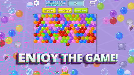 Bubble Hit Classic wyróżnia się żywą grafiką i wciągającą mechaniką. Gracze mają za zadanie ukończyć szereg poziomów, strategicznie grupując bąbelki i oczyszczając planszę. Połączenie kolorowych bąbelków i strategicznej rozgrywki tworzy zachęcające doświadczenie, które poprawia koncentrację i relaks.