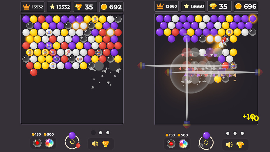 Skoncentruj się na usuwaniu grup tego samego koloru i skorzystaj ze specjalnych bąbelków, aby uzyskać bonusy. Planowanie swoich ruchów do przodu może stworzyć dodatkowe kombinacje!