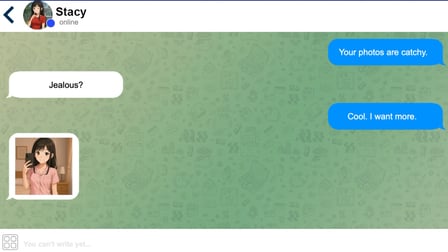 W "Chat with Stacy" gracze zanurzają się w interaktywnym świecie, pełnym realistycznych czatów, zdjęć i historii. Relacje z Nastją rozwijają się na podstawie wyborów gracza, wpływając na to, jak historia się rozwija. Mini-gry pozwalają na zdobywanie punktów, co jeszcze bardziej angażuje uczestników w przygodę. Możliwość zbudowania bliskiej relacji z postacią sprawia, że gra jest niezwykle wciągająca.