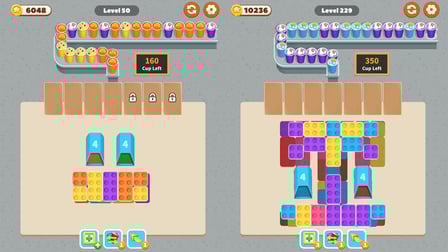 Gra oferuje różne wzmocnienia, w tym przetasowania filiżanek, cofanie ruchów i odblokowywanie dodatkowych slotów tacek, aby wzbogacić twoje doświadczenie sortowania.