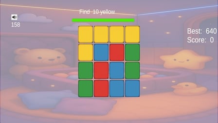 Wejdź do żywego świata Color Rush, ekscytującej gry online akcji i łamigłówki, która wystawia twoją szybkość i uwagę na absolutną próbę! Twoim celem w tej fascynującej grze jest znalezienie wszystkich kafelków w docelowym kolorze, zanim czas się skończy. Im szybciej klikniesz na właściwe kafelki, tym wyższy wynik osiągniesz!