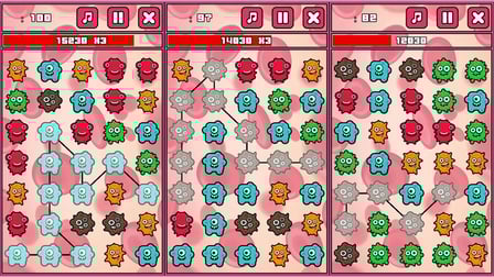 Gra w Colored Microbes Rows jest prosta! Na swoim komputerze użyj myszy, aby klikać i przeciągać między przyległymi mikroorganizmami w tym samym kolorze, aby stworzyć łańcuch. Na swoim telefonie wystarczy dotknąć i przytrzymać pierwszy mikro obiekt, a następnie przeciągnąć do następnego. Gdy stworzysz łańcuch trzech lub więcej, te mikroby znikną, przyznając Ci punkty i dodając więcej czasu do odliczania.