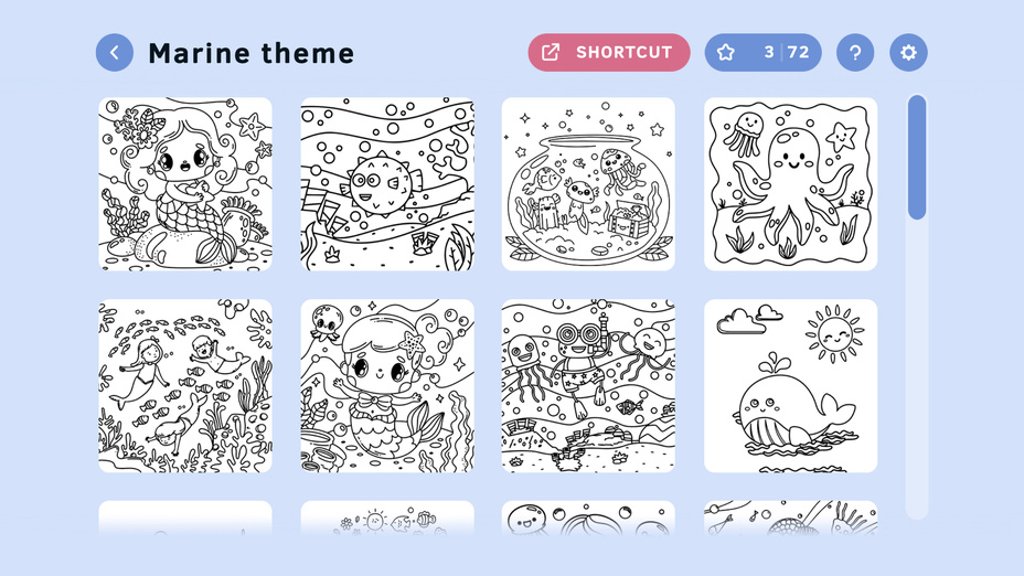 W Coloring Book Free Online masz swobodę wyboru spośród wielu kolekcji, co pozwala odkrywać i kolorować obrazy, które pasują do Twoich zainteresowań i nastroju. Każda kolekcja oferuje unikalny motyw, gracze mogą zagłębić się w różne pomysłowe ustawienia i ożywić wybrane obrazy. Gra jest przeznaczona dla szerokiej publiczności, catering dla dzieci, młodzieży, a nawet dorosłych, którzy znajdują radość w relaksującej kreatywności. Niezależnie od tego, czy jesteś fanem uroczych zwierzątek, mitycznych stworzeń, takich jak jednorożce i syreny, czy bezmiaru kosmosu, czeka na Ciebie kolekcja. Bez względu na wiek, Coloring Book Free Online to przyjemna ucieczka w świat sztuki i wyobraźni.