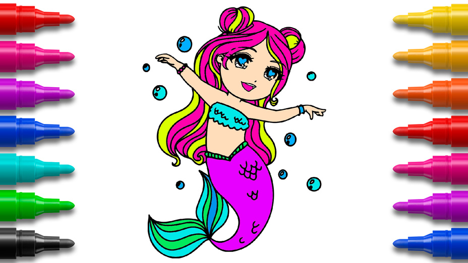 Rozgrywka kolorowanki wróżki syreny i zwierzęta